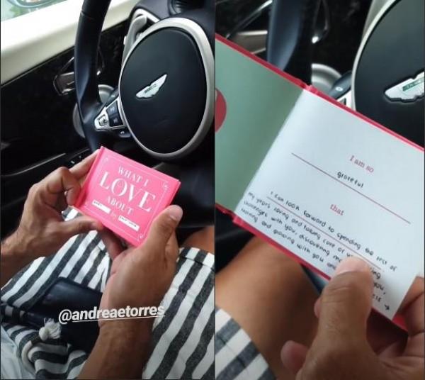 Kapuso actress Andrea Torres dialed up the sweetness this 2020 by giving her real-life boyfriend Derek Ramsay a book of all the reasons why she loves him.