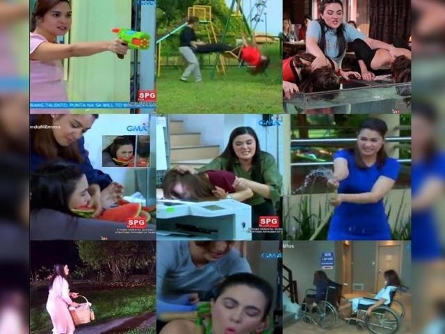 Kabilang sa mga eksena ang pagbaril ni Georgia kay Emma gamit ang Nerf gun, pagtapon ng balot ni Emma kay Georgia, pagsakal ni Georgia kay Emma gamit ang jump-rope, at ang kanilang naging wheelchair race.