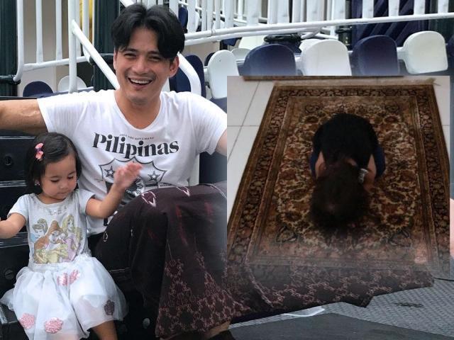 She wrote, “Daddy's Girl talaga!!! She sees her dad praying all the time so she entered the praying room and when she saw the carpet she copied what she would see from her dad. Her yaya has been telling me that she does this but it is only now that I saw it in pictures. Thank you for the photos NyaNya.”