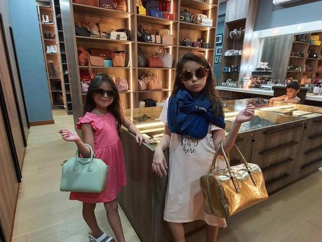 Kendra and Scarlett Kramer had a chance to invade Chesca's closet, and they didn't let the opportunity of trying their mom's shoes and bags pass.