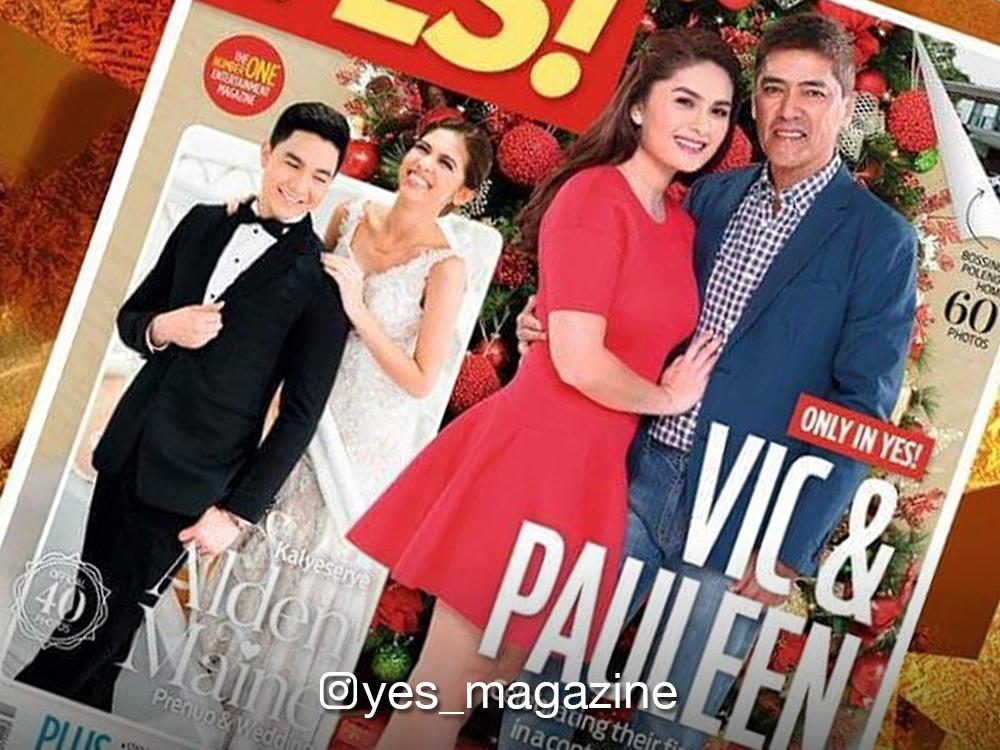 Married couple Vic Sotto and Pauleen Luna, and phenomenal love team Alden Richards and Maine Mendoza are on the cover of the December 2016 issue of entertainment magazine Yes!