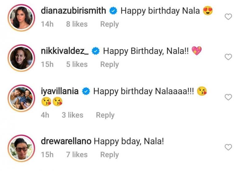 Local celebrities such as Iya Villania-Arellano, Drew Arellano, Diana Zubiri-Smith, and Nikki Valdez sent their thoughtful birthday greetings for Nala in the comments section.