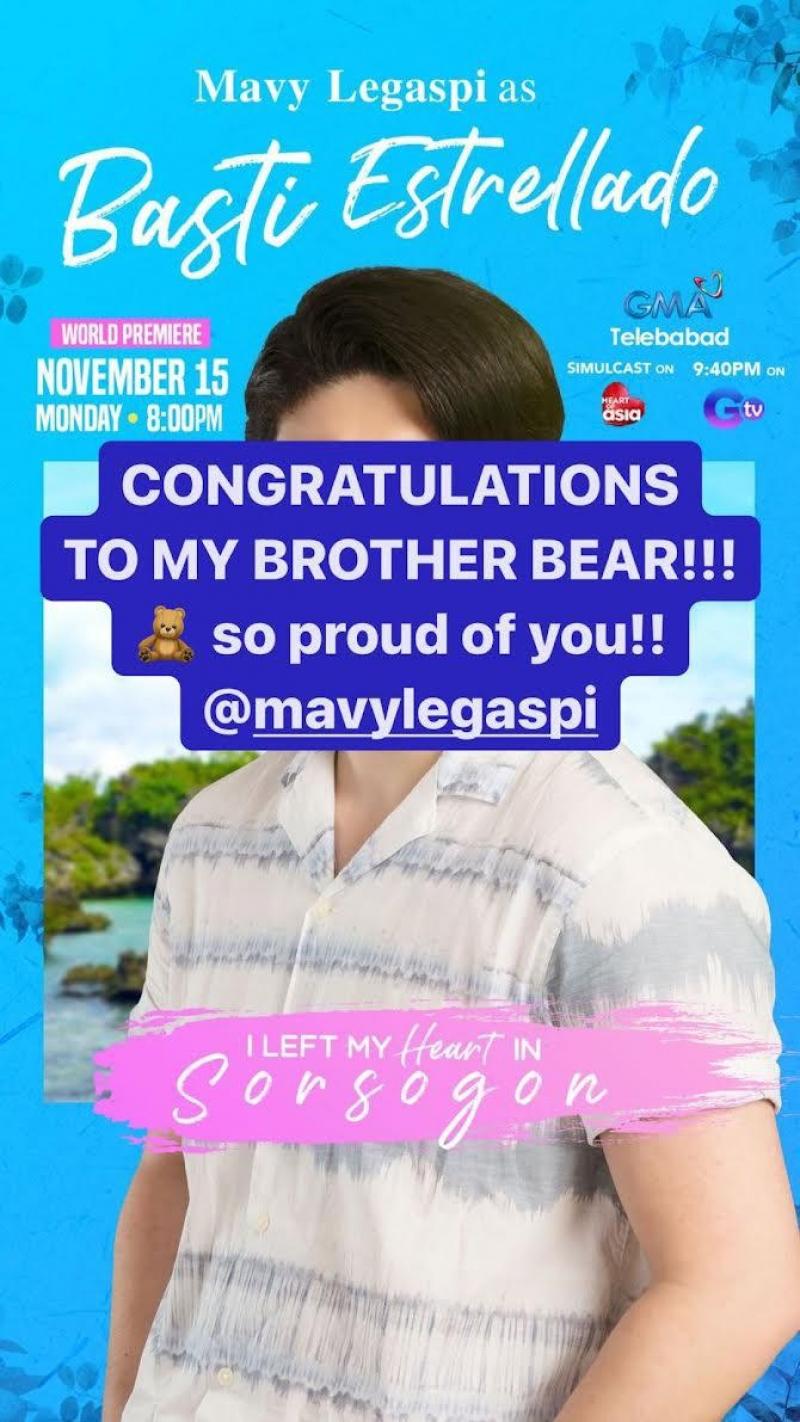 On Instagram stories, Cassy shared the poster with a caption that read, "CONGRATULATIONS TO MY BROTHER BEAR!!! so proud of you!! @mavylegaspi."