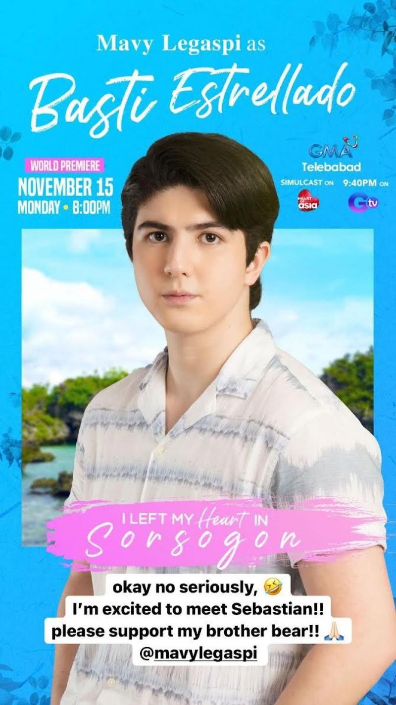 The poster was an introduction to Mavy's character in the show, Sebastian Estrellado, the estranged half-brother of Heart Evangelista's character Celeste.