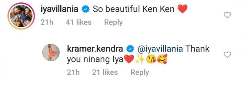 Kendra replied, “@iyavillania Thank you ninang Iya.”