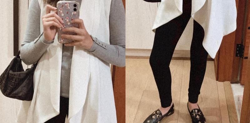 In a post on Instagram, the 12-year-old uploaded a series of photos of herself rocking a gray long-sleeved top, a white cardigan, and black leggings.