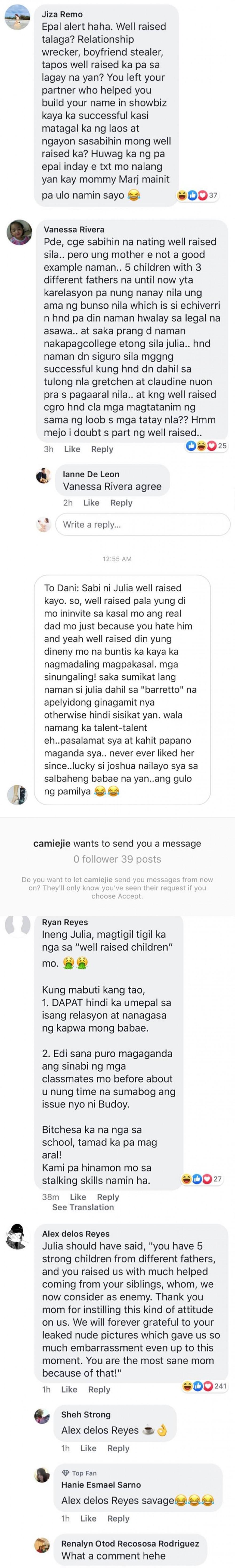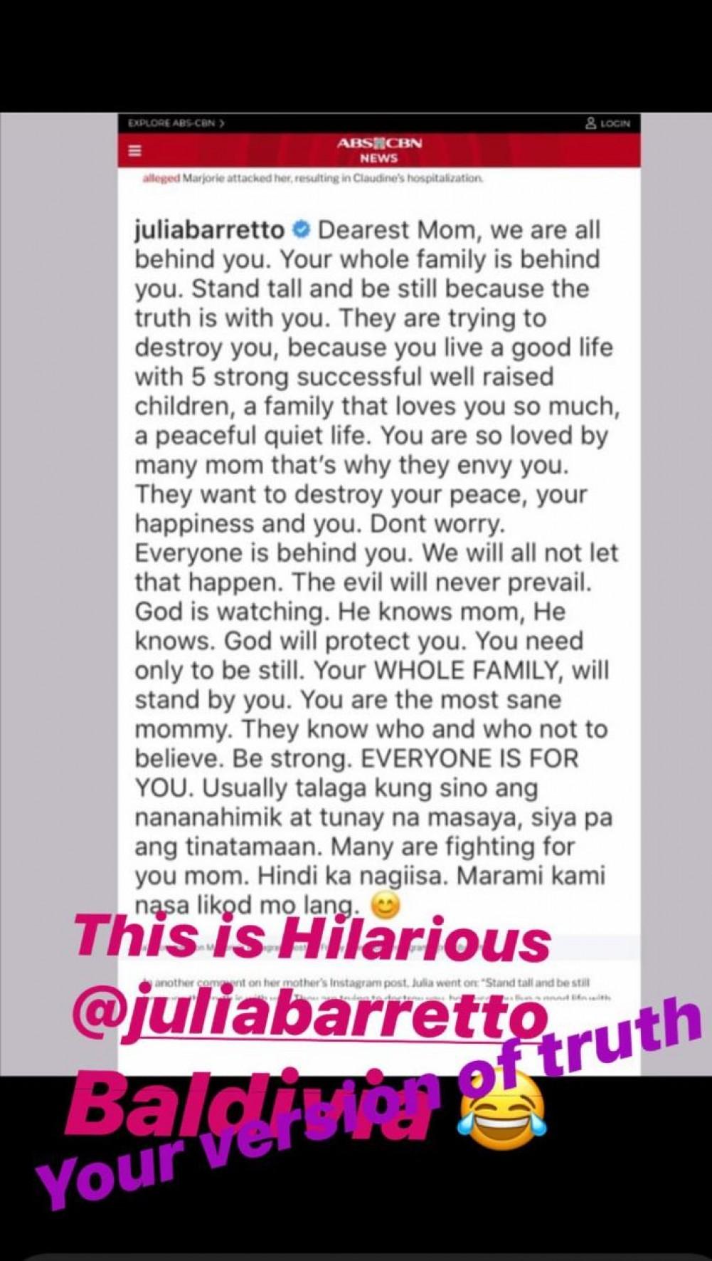 "This is hilarious @juliabarretto baldivia," Gretchen wrote with Julia's comment on the background.