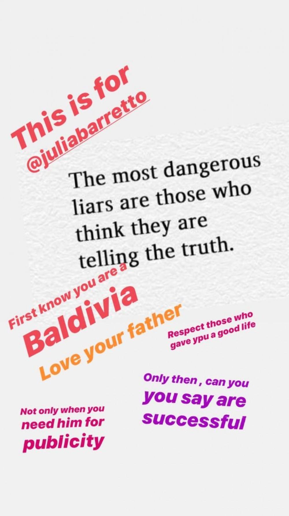 "The most dangerous liars are those who think they are telling the truth," post ni Gretchen kalakip ang ilang paalala kay Julia.