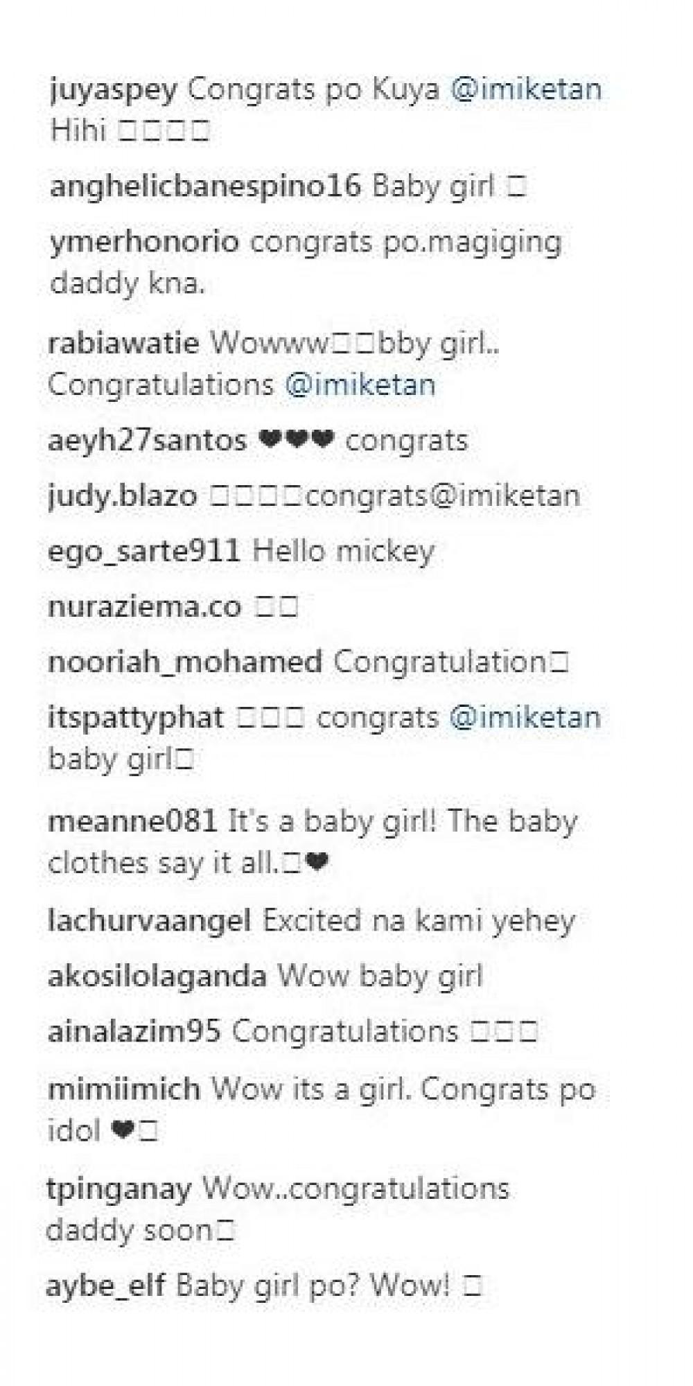 Seen in his post are baby clothes with the color pink which prompted netizens to guess that he is expecting a girl.