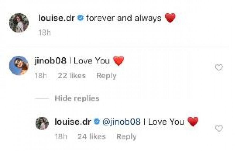 A quick check in the comments section of the Instagram post shows that Louise replied to the “I Love You” comment of a certain @jinob08.