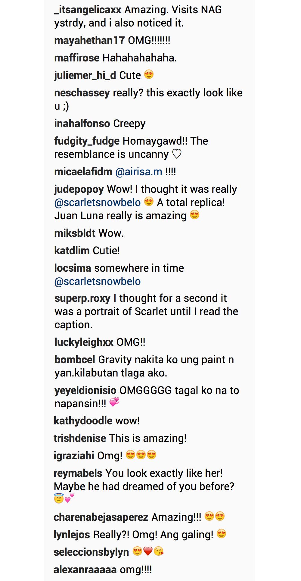 Scarlet shared a photo of Luna's 'Mi Hijo Andres,' a portrait of his son, which is exhibited at the National Art Gallery.