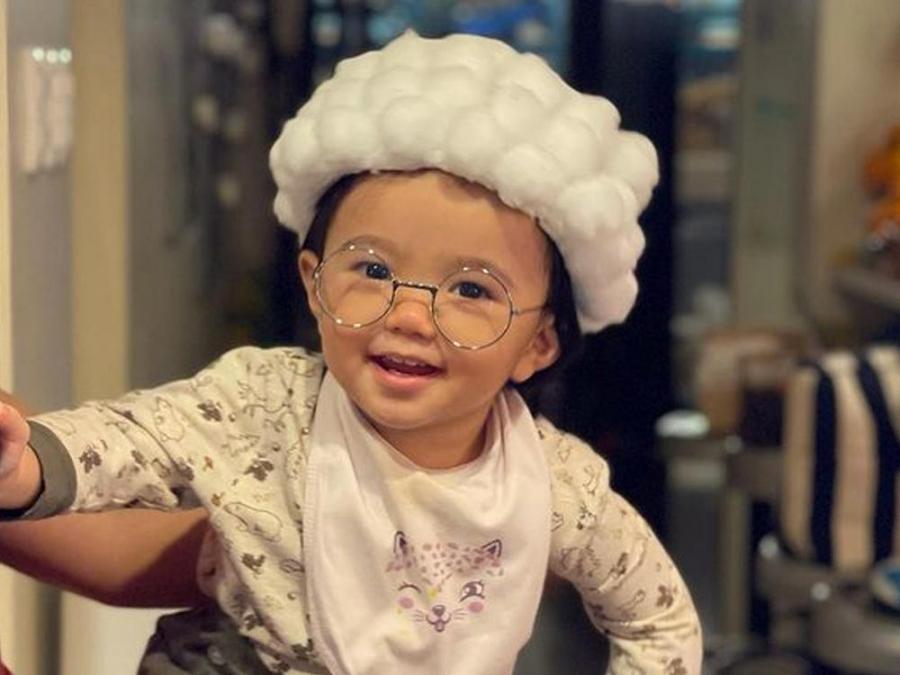 The Biyahe Ni Drew host shared a photo of his one-year-old daughter wearing a fluffy white wig, which seemed like a cloud of white cotton balls, and a pair of rounded-framed eyeglasses that made her look like a small grandma.