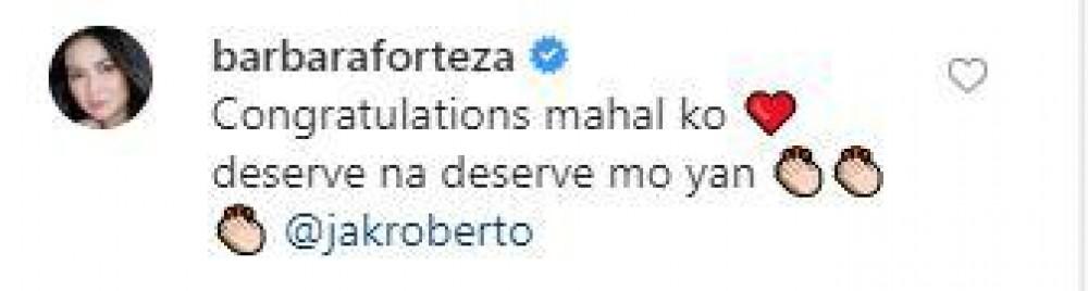 "Congratulations mahal ko. Deserve na deserve mo yan," Barbie wrote.