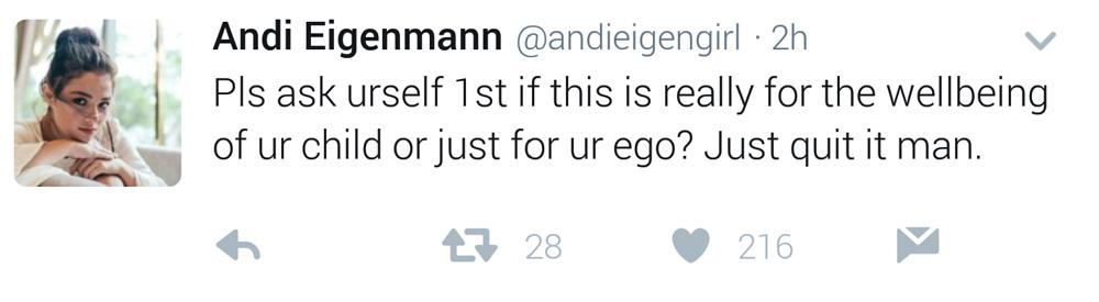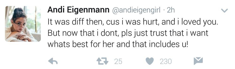 Ilang oras ang lumipas ay sumagot naman si Andi. Ayon kay Andi na iba na raw ang sitwasyon nila ngayon at nais lamang raw niya ay ang ikakabuti ng kanilang anak na si Ellie.
