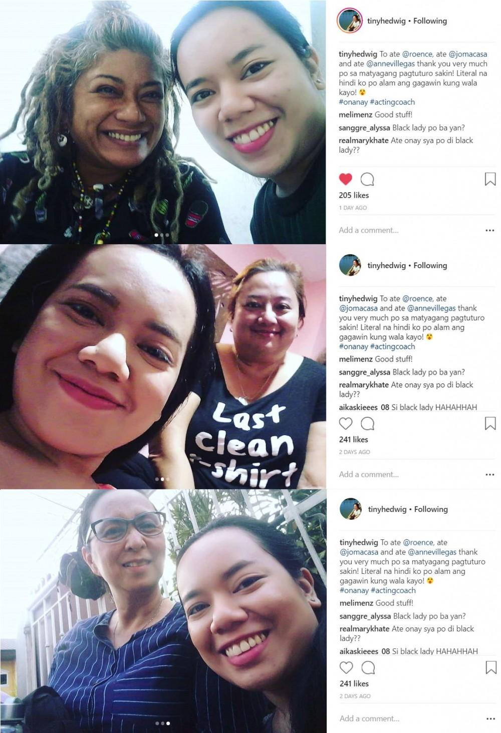 Sa pamamagitan ng Instagram, pinasalamatan ng 24-year-old actress ang kanyang mga mentors. Mensahe niya, "To ate @roence, ate @jomacasa and ate @annevillegas thank you very much po sa matiyagang pagtuturo sa'kin! Literal na hindi ko po alam ang gagawin kung wala kayo!"