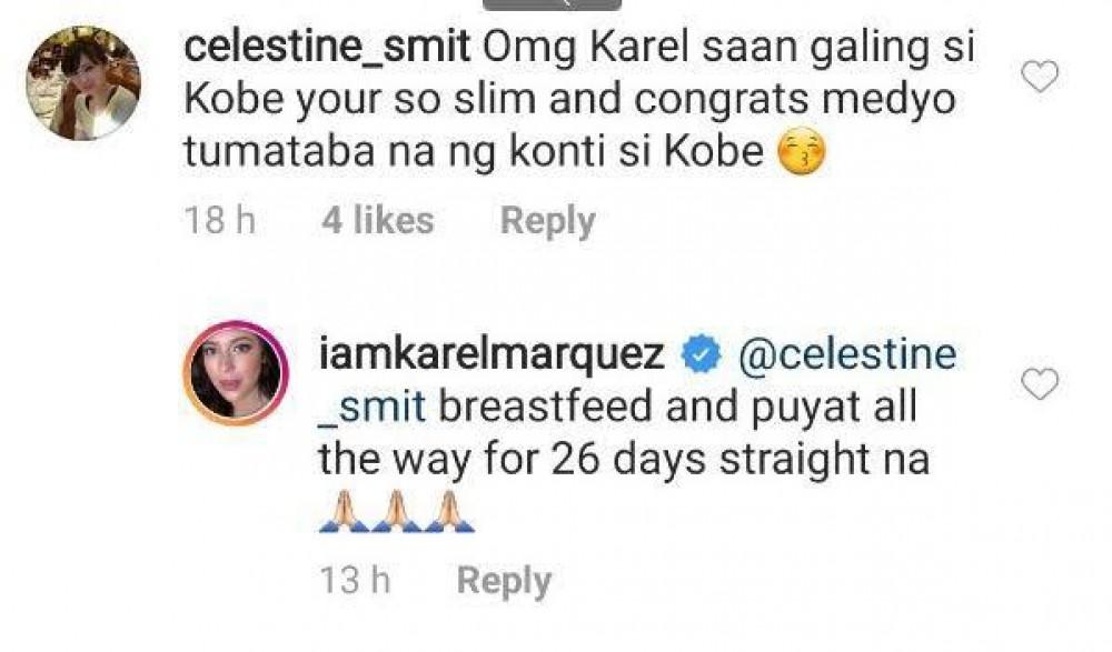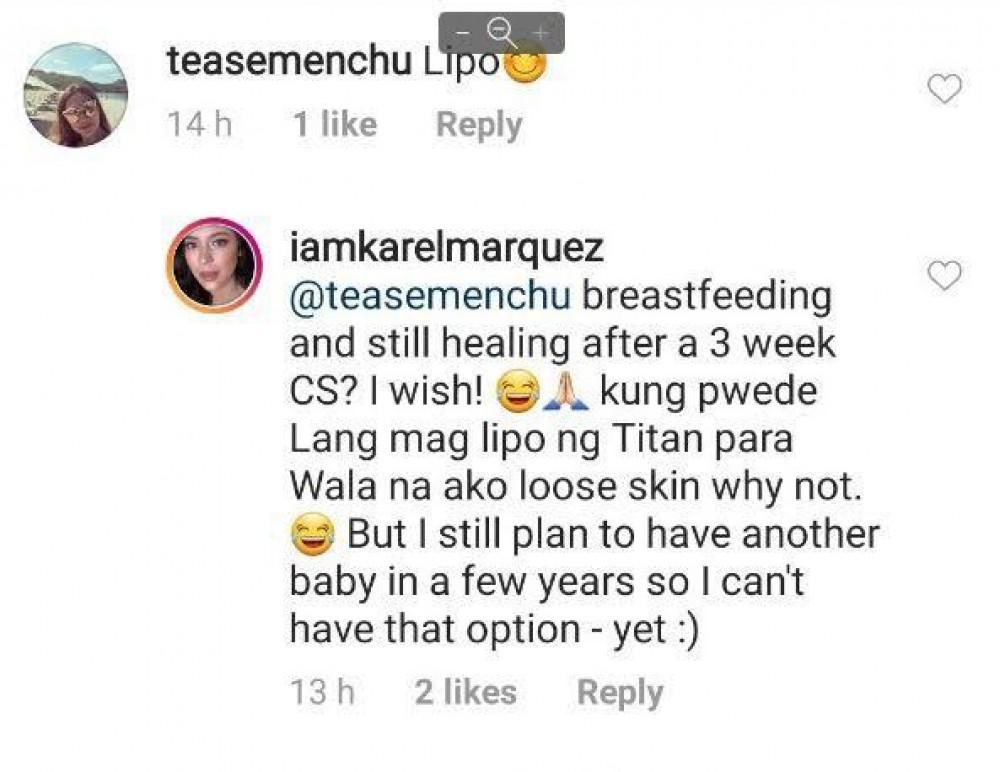 A netizen commented on the photo of Karel hinting that the actress-singer underwent liposuction.