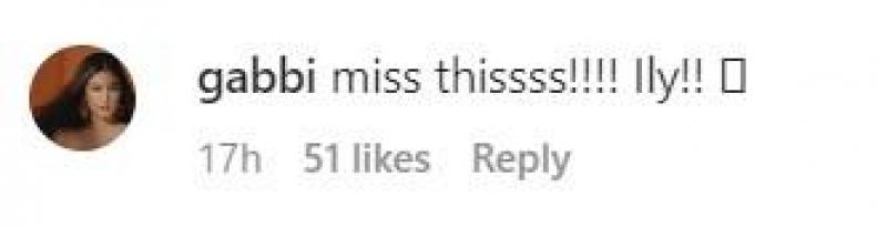 In the comments section of his post, Gabbi dropped a comment saying, "miss thissss!!!! Ily!!"