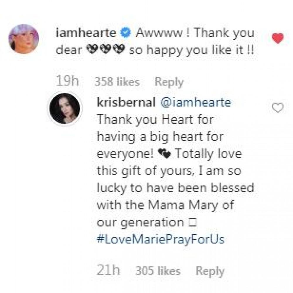 Kris also admitted that she's impressed with Heart's humility. "There's just so much to love about her. Sobrang humble! Nakakahawa at mahihiya ka! I love you, Heart. Your heart cannot be found just anywhere. I will keep supporting you till the end."