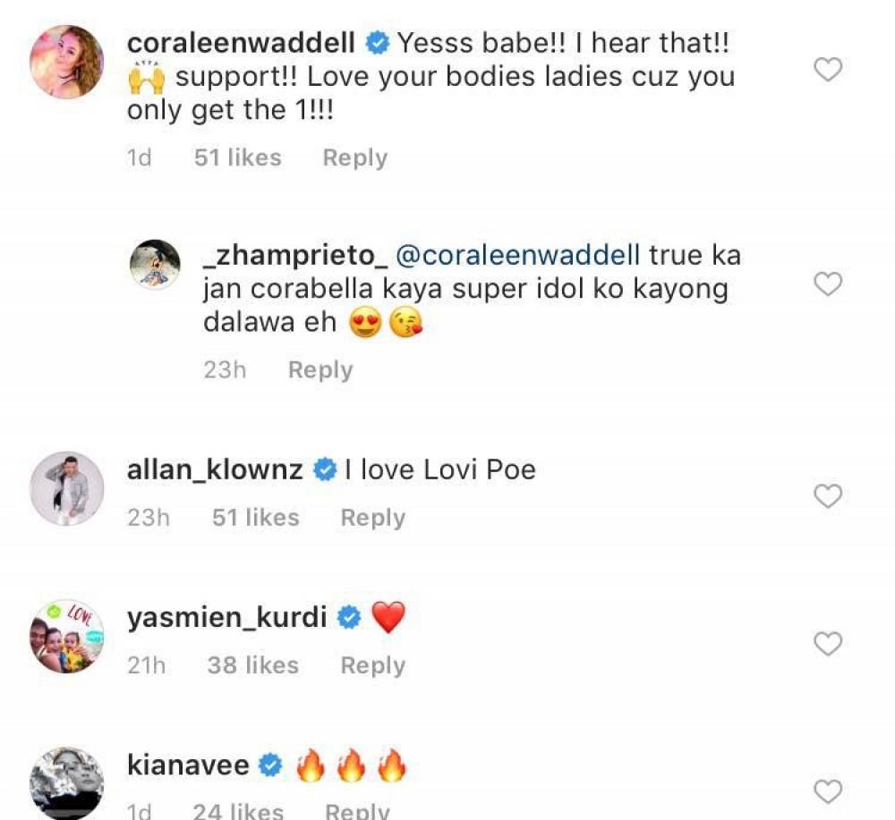 Celebrities like Cora Waddell, Allan K, Yasmien Kurdi, and Kiana Valenciano also commended Lovi.