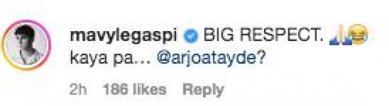 Mavy Legaspi jokingly commented, “BIG RESPECT. kaya pa… arjoatayde?”