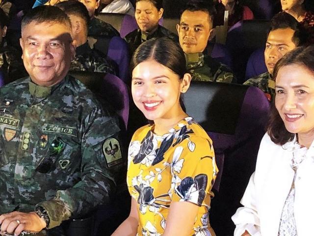 Sa isang Instagram post ni GMA reporter Cata Tibayan, nakasama ni Maine manuod ang ilang miyembro ng Special Action Force ng PNP.