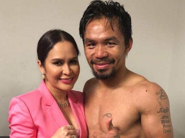 Backstage, he posed beside his number one supporter in the world, wife Jinkee Pacquiao who has been behind his 60th win and successful career for 23 years.
