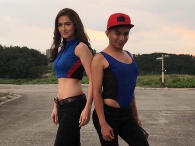 Mistulang twinning ang outfit ng magkaibigang Marian at Boobay na kuha sa taping ng Super Ma'am.