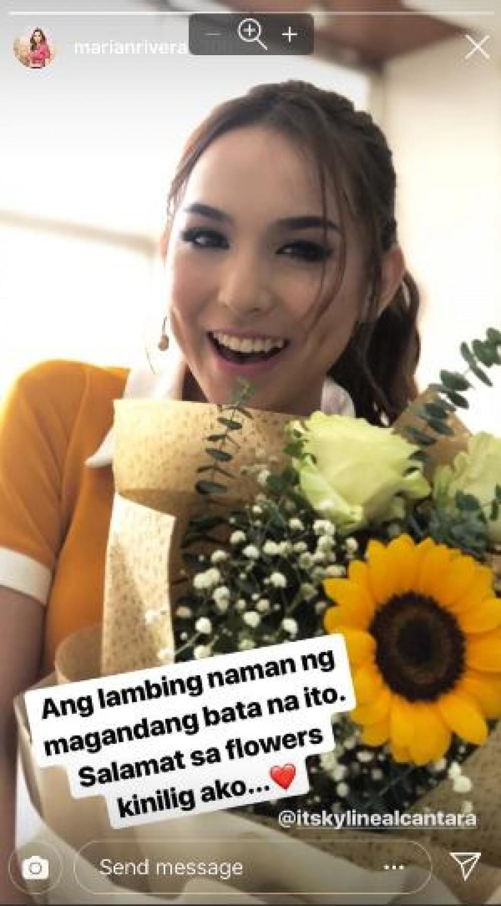 Makikita sa Instagram story ng asawa ni Dingdong Dantes na binigyan siya ng bouquet of sunflowers ng Kambal, Karibal star na si Kyline Alcantara.