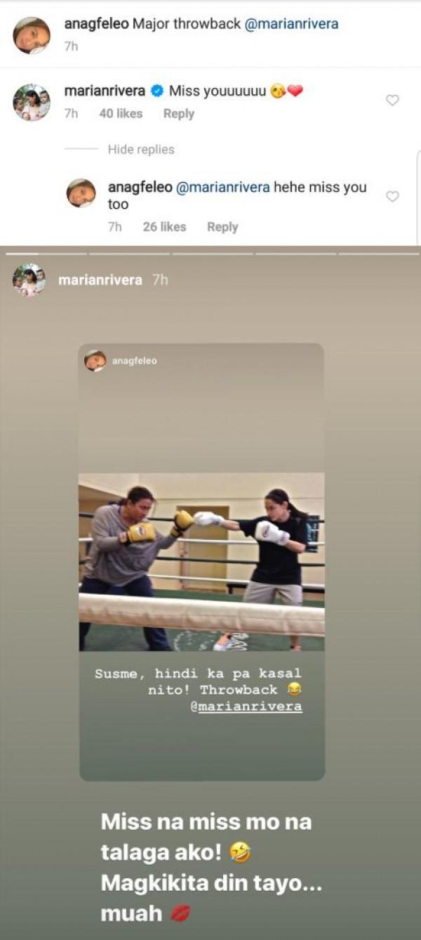 Marian reacted to Ana's post about their boxing days together. The Kapuso actress expressed how much she misses her friend, who was one of her maids-of-honor during her star-studded wedding in 2014.