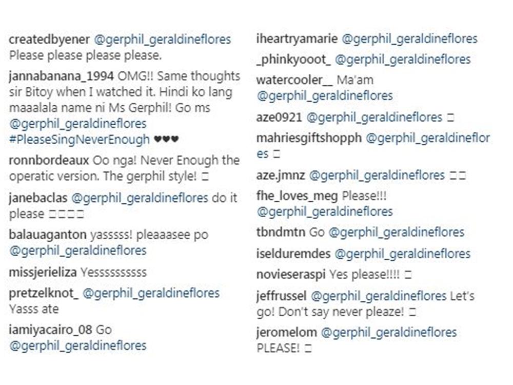 “I want to hear it so bad that I’m reaching out to Gerphil Flores to do her version of this already beautiful song. Help me out guys. Kulitin natin s’ya. @gerphil_geraldineflores,” he added.
