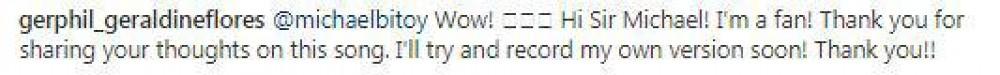 She said, “Wow! Hi Sir Michael! I’m a fan! Thank you for sharing your thoughts on this song. I’ll try and record my own version soon! Thank you!”