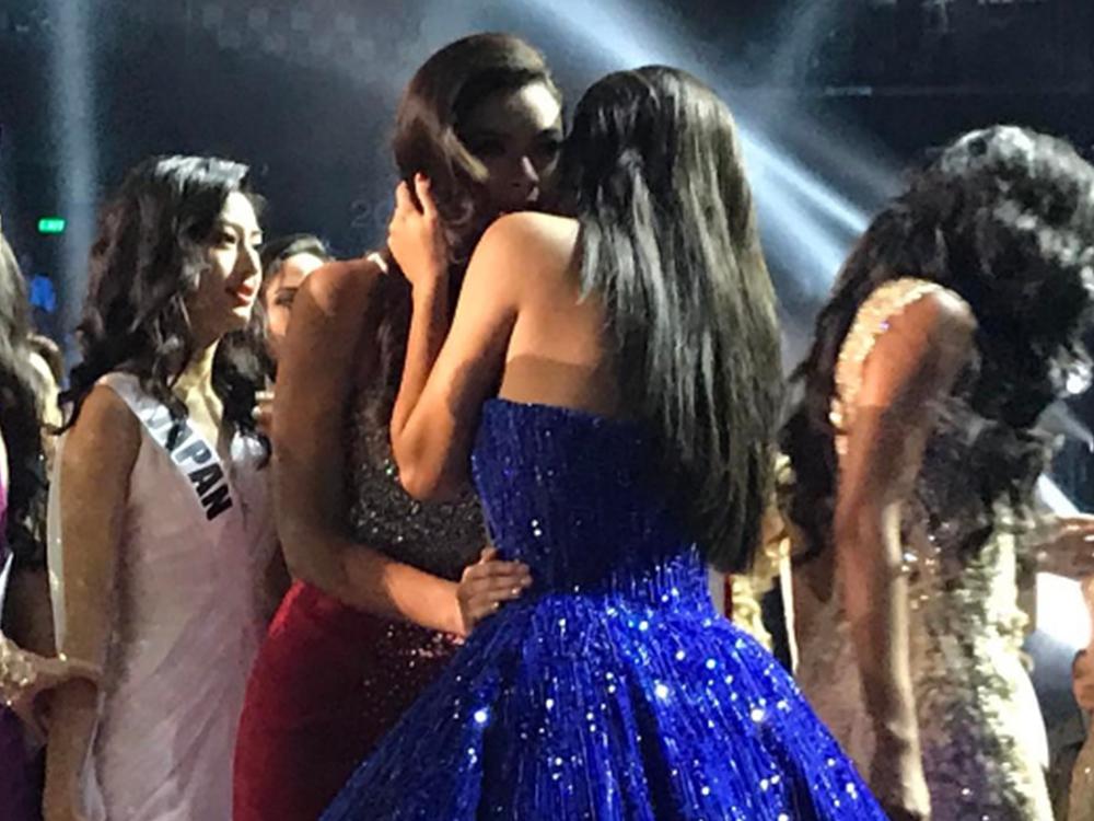 After Miss Universe 2015 Pia Wurtzbach made her final walk and crowned her successor, Miss Universe 2016 Iris Mittenaere of France, Queen P went to comfort Maxine. It was captured by their mentor and beauty queen maker Jonas Gaffud.