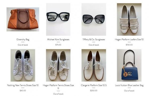 Sunglasses and shoes for sale on Elizabeth Stewart's closet