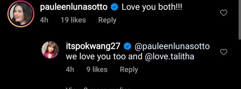 Eat Bulaga! host Pauleen Luna-Sotto expressed her all-out love for the two through the words, “Love you both!!!” to which Pokwang responded back, “We love you too and @love.talitha.”