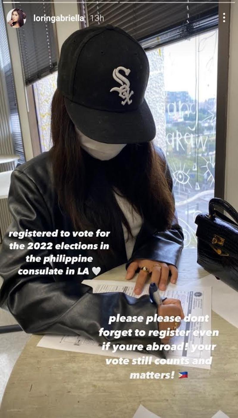 “Registered to vote for the 2022 elections at the Philippine Consulate in LA,” her post read.