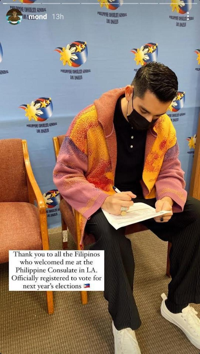 He wrote, “Thank you to all Filipinos who welcomed me at the Philippine Consulate in LA. Officially registered to vote for next year's elections.”