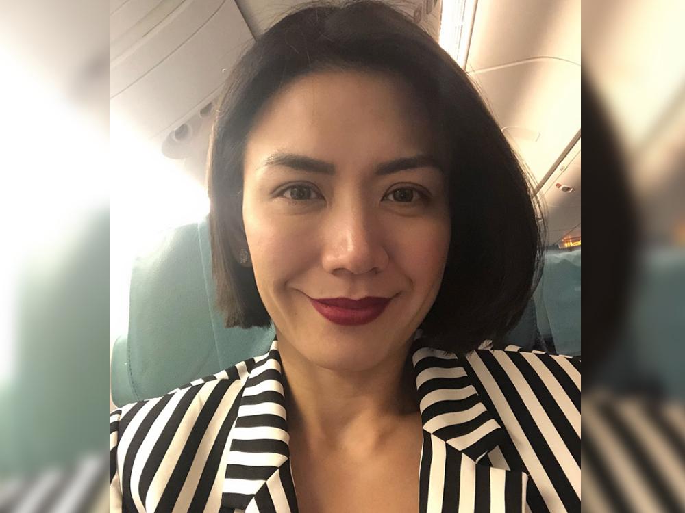 On Twitter, the former Unang Hirit host shared a selfie inside an airplane with a smile on her face.