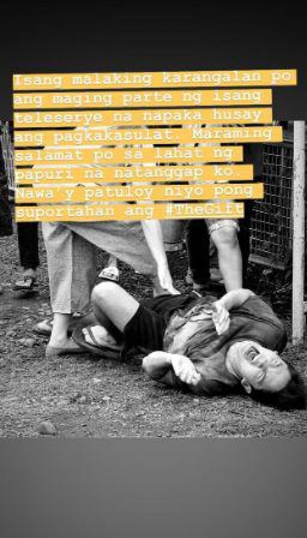 The actor posted a photo showing one of his acting highlights from the inspirational drama with this message: “Isang malaking karangalan po na maging parte ng isang teleserye na napaka husay ang pagkakasulat. Maraming salamat po sa lahat ng papuri na natanggap ko. Nawa'y patuloy niyo pong supportahan ang #TheGift.”