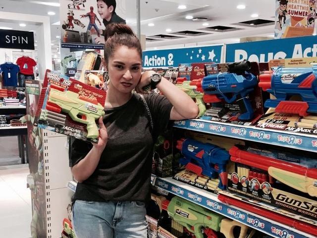 "Hmmmmm..... kailangan maging handa na si Georgia. Baka kumanta na si Loleng!" pagtukoy ni Ryza sa toy gun na kanyang hawak.