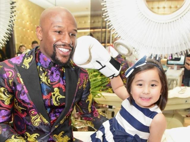 "I'll get in trouble with Daddy for hitting a person, but Mr. @floydmayweather said if I do it gently it's okay," the caption reads.