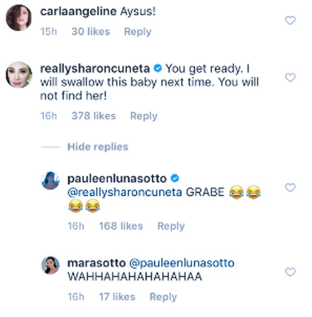 Hindi tuloy mapigilan ng Kapamilya TV host/actress na si Sharon Cuneta na panggigilan ang sobrang nakakaaliw na video ni Tali nang magkomento ito sa Instagram.