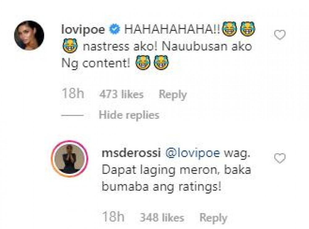 Sa nakaraang post, isinulat niya, “To @lovipoe : tan-tanan mo ako, ngayon lang din! I told you, wait for it!”