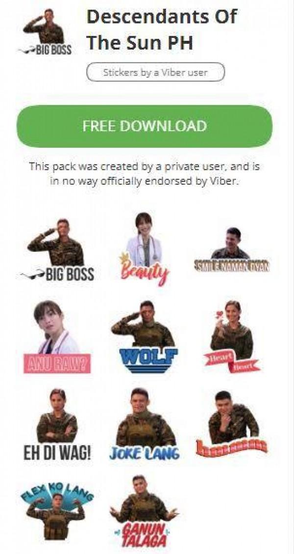 Available na online ang mga nakakaaliw na stickers at GIFs ng Descendants of the Sun (The Philippine Adaptation) for free.