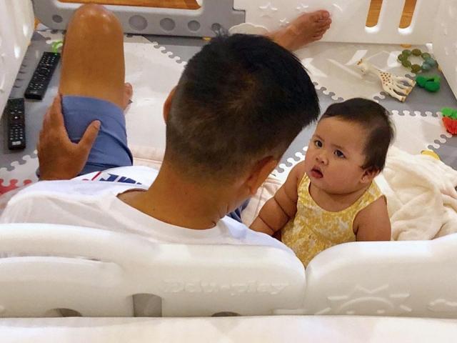In their photo, Vic can be seen bonding with Baby Tali inside her fenced play area.