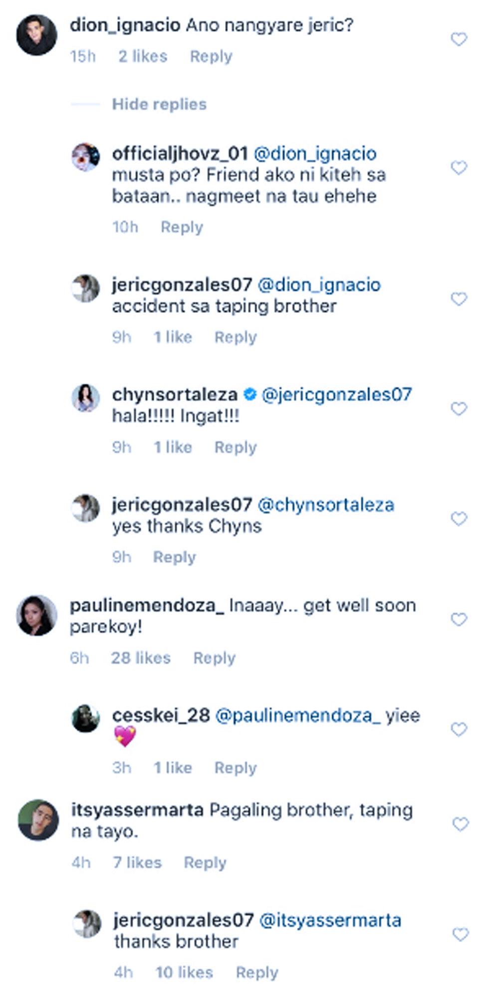 Several celebrities reacted to the posts of the Kapuso actor and wished him fast recovery.