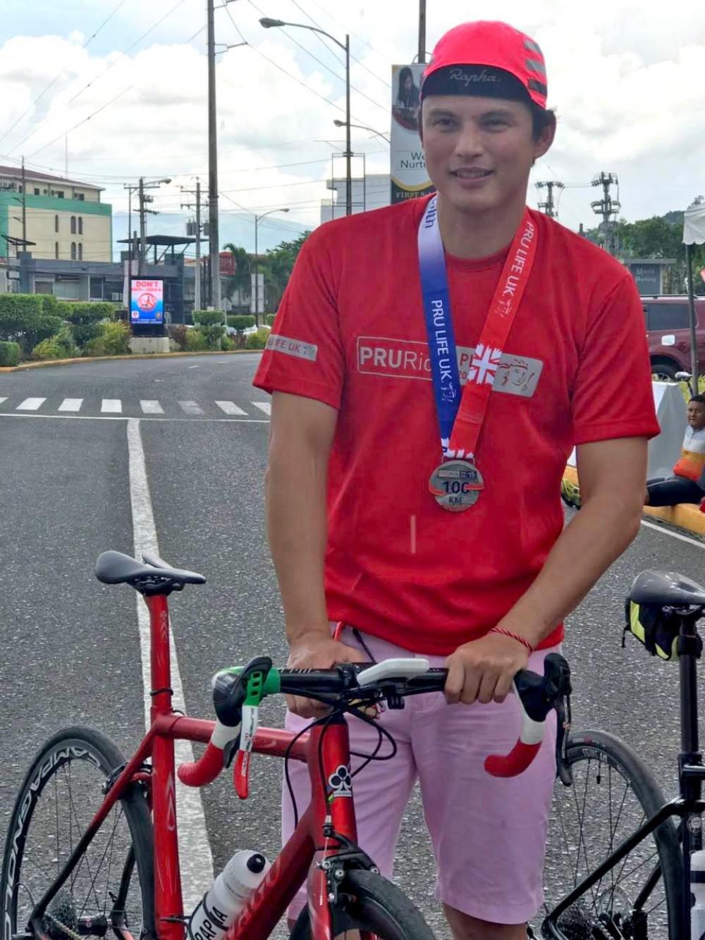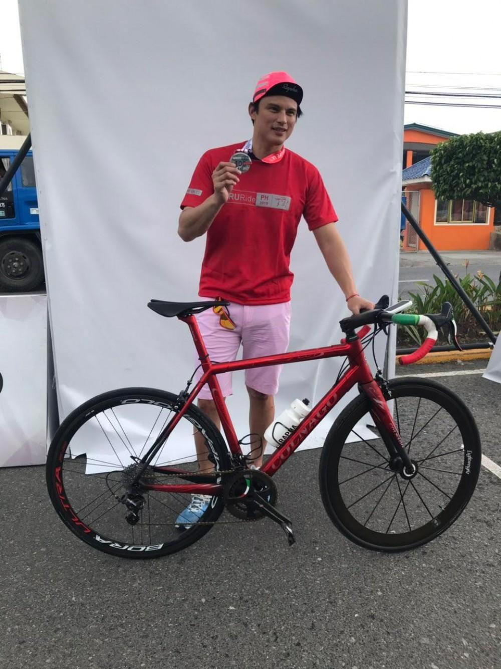 The actor joined the PRU Ride Gran Fondo 100 which aims for a cyclist to follow a 100-kilometer route that starts from Harbor Point Mall in Subic Bay Freeport Zone, coursing through the roads of Bataan province and back again to Subic.