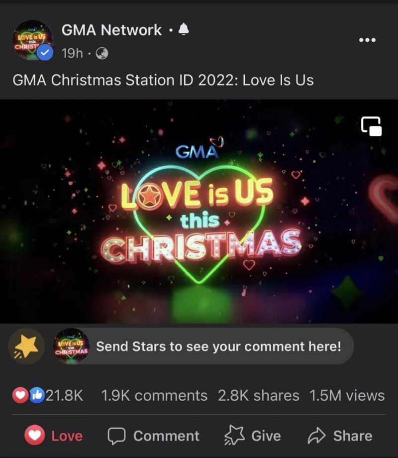 In less than 24 hours, the 2022 GMA Christmas Station ID, "Love is Us this Christmas," has amassed over 1 million views on Facebook.