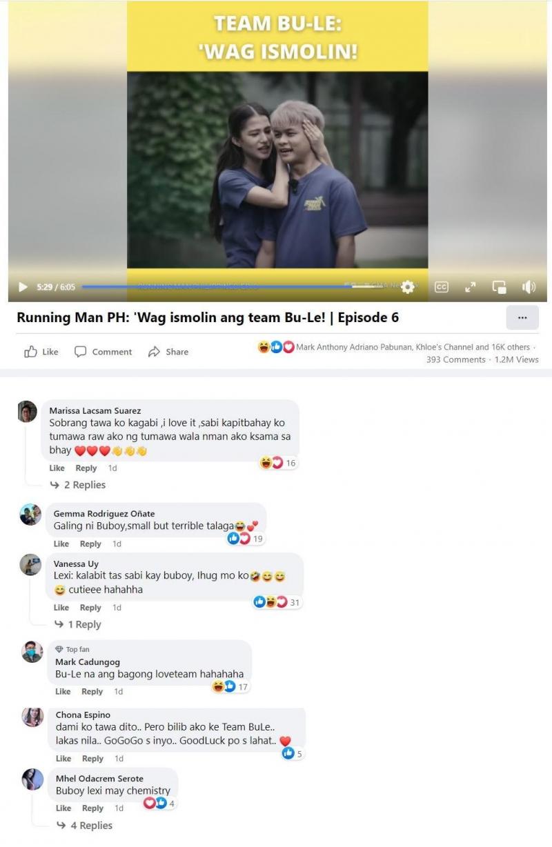 May mahigit 1.2 million views na sa Running Man Philippines Facebook page ang highlights ng performance ng binansagang BuLe at umani rin sila ng papuri mula sa netizens at viewers na tuwang tuwa sa chemistry nila sa Wedding Race.