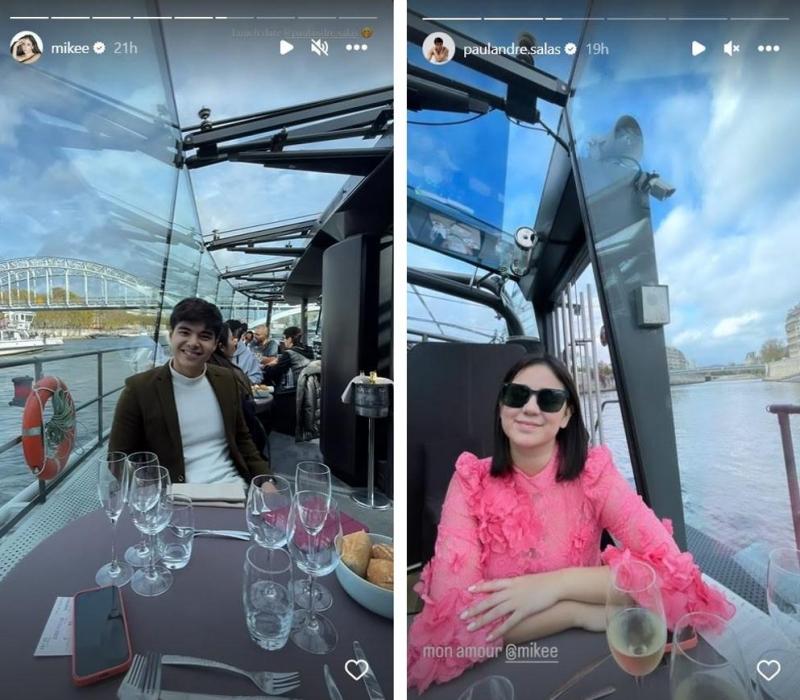 Sa kanilang Instagram stories ngayong Martes, November 8, ibinahagi ng dalawa ang video ng kanilang sweet moment sa harap ng Eiffel Tower. Sa naturang video, mapapanood na kinakantahan pa ni Mikee si Paul ng awiting "La Vie En Rose."