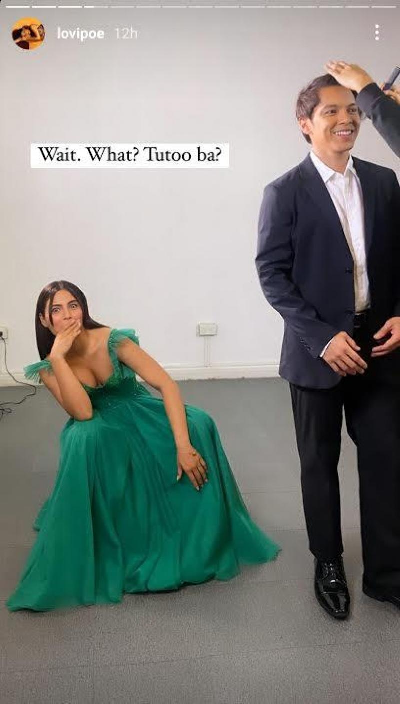 Bukod dito, nagpasilip din Lovi ng ilang behind-the-scenes na litrato nila ni Carlo sa kanyang Instagram Stories.